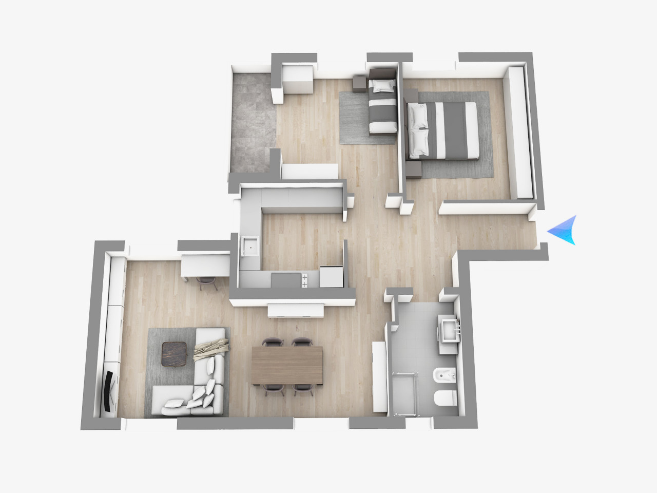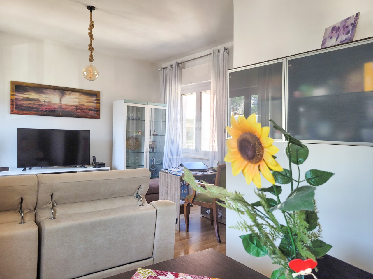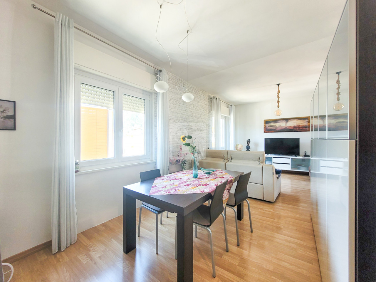 L'appartamento di ampie dimensioni in contesto di poche unità abitative. Si trova al secondo piano ed è composto da: ampio ingresso, soggiorno, cucina separata, camera matrimoniale, ampio bagno finestrato e camera singola con poggiolo. A piano terra garage di 38 mq. --Porta blindata, doppi vetri, radiatori nuovi, pannelli solari per acqua calda.